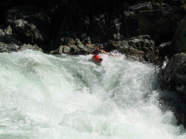 The Dream Gap itself is 3 rapids. Each is pretty tricky. The first involves a steep 5ft ledge, and a tricky midstream boulder. The second involves a move where you must surf a big 4ft crashing wave, peel out to drop down 15ft of tongues and crashing waves avoiding a grabber hole at the bottom. The third is probably the cleanest, but it is also un portagable and hard to scout from up high above on the cliffs.
