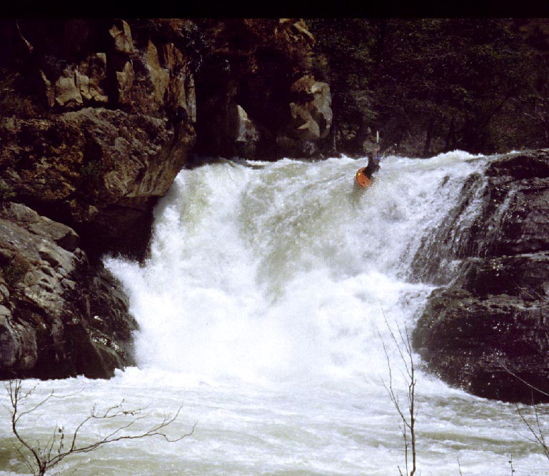 Three of us ran the drop that day. Rocky chose to run through the center wave portion of the hole above the drop, while Rick and I elected to run the tongue to the left of the wave hole. Rocky was able to stay a bit further to the left, but landed a bit flat. Rick and I both slipped right and went deep.