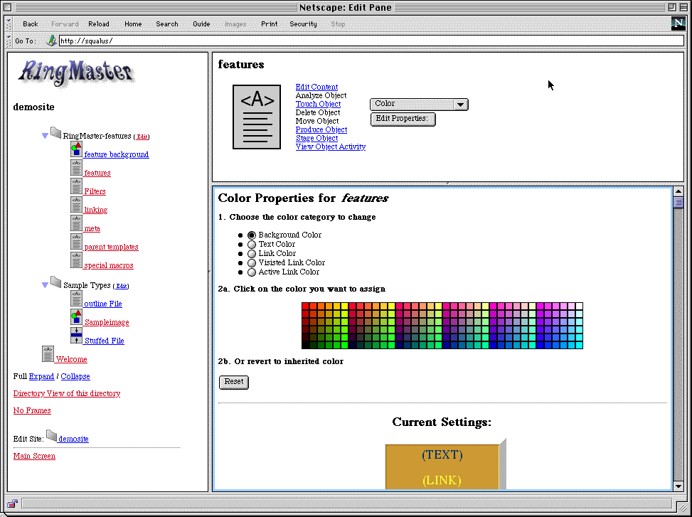 These are some screenshots of the web interface to the Ringmaster suite. They are not mockups but shots of the current suite (which is why some commands are not yet active). Some of the colors may be a little off as I've tried to reduce the palletes to reduce bandwidth.